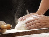 Kobieta co ciasto z mięsa w domu