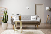 Zdjęcie "Wnętrzu przytulny pokój dzienny z rozkładaną sofą" może być wykorzystywane do celów osobistych i komercyjnych zgodnie z warunkami zakupionej licencji Royalty-free. Obraz jest dostępny do pobrania w jakości wysokiej rozdzielczości do 5760x3840.