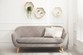 Zdjęcie "Wnętrzu przytulny pokój dzienny z rozkładaną sofą" może być wykorzystywane do celów osobistych i komercyjnych zgodnie z warunkami zakupionej licencji Royalty-free. Obraz jest dostępny do pobrania w jakości wysokiej rozdzielczości do 5760x3840.