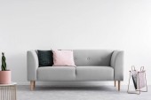 Wnętrzu przytulny pokój dzienny z rozkładaną sofą