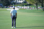 Azjatycka golfistą stoi i zegarek po umieszczeniu na zielone pole golfowe