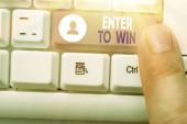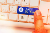 Wprowadzić do wygrania koncepcja Laptop ekran z rąk na klawiaturę Wpisanie