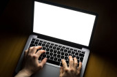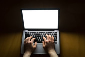 Serdecznie polecam koncepcja Laptop ekran z rąk na klawiaturę Wpisanie