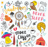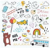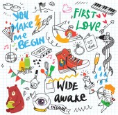 Zestaw kolorowych gryzmoły na tle papieru, ilustracji wektorowych