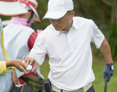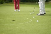 nie do poznania azjatycki człowiek zakładanie zielonej piłeczki do golfa w lecie