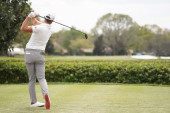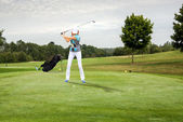 Azjatyckie kobiety gry w golfa, kołysanie golf club dla teeing w toku