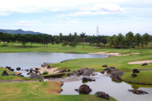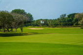 Zdjęcie "Fairway & bunkry w pięknej tropikalnej pole golfowe otoczony drzewami" może być wykorzystywane do celów osobistych i komercyjnych zgodnie z warunkami zakupionej licencji Royalty-free. Obraz jest dostępny do pobrania w jakości wysokiej rozdzielczości do 5760x3840.