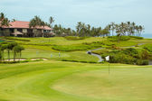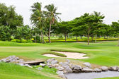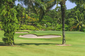 Fairway & bunkry w pięknej tropikalnej pole golfowe otoczony drzewami