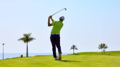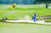 Azjatyckie kobiety gry w golfa na zewnątrz w kurs w okresie letnim