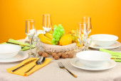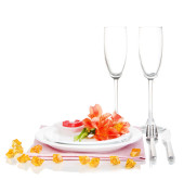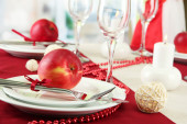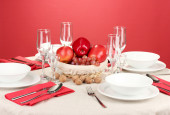 ustawienie stołu w odcieniach czerwieni na kolor tła