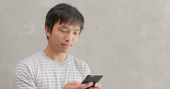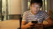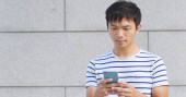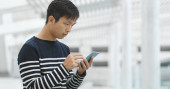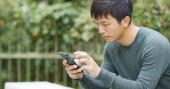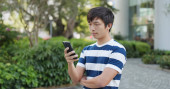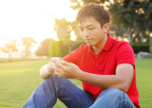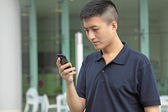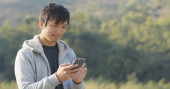 Człowiek za pomocą telefonu komórkowego na zewnątrz