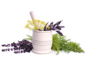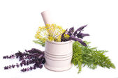 Świeże przyprawy i herbsisolated na białe tło wyłącznik. liście bazylii czerwony