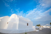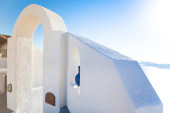 Biała architektura na wyspie Santorini, Grecja.