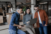 współpracownikami, praca ze schowka podczas relokacji w nowym biurze