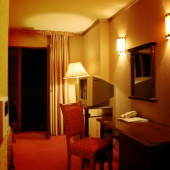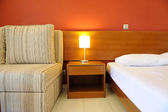 Akcesoria do sypialni. Lustro ścienne z drewnianą ramą i nowy telewizor w sypialni.