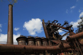 Architektura fabryka cementu. Zewnątrz architektura fabryki cementu z Rumunii.