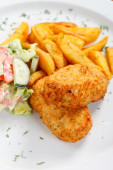 Kotlet z kurczaka. Kotlet z kurczaka z dekoracji na płytce białym tle.