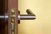 Złote klamki. Wyświetlić zbliżenie złoty uchwyt drzwi do pokoju.