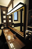 Akcesoria łazienkowe. Różne akcesoria, jak umywalki, kabinę prysznicową, wewnątrz łazienka.