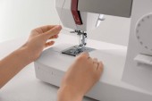 Zdjęcie "Szczelnie-do góry ręce kobiece test maszyna do szycia po naprawie, ciągnąc wątek. Widok z przodu." może być wykorzystywane do celów osobistych i komercyjnych zgodnie z warunkami zakupionej licencji Royalty-free. Obraz jest dostępny do pobrania w jakości wysokiej rozdzielczości do 5760x3840.