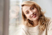 piękna kobieta zatroskana różowa bluzka i kurtka patrząc od