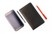Starym stylu czarny telefon komórkowy na białym tle