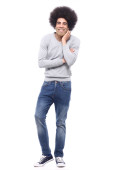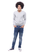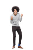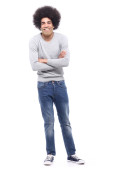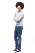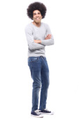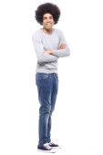 Zdjęcie "Szczęśliwy człowiek afro przed białym tle" może być wykorzystywane do celów osobistych i komercyjnych zgodnie z warunkami zakupionej licencji Royalty-free. Obraz jest dostępny do pobrania w jakości wysokiej rozdzielczości do 5760x3840.