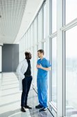 Chirurgia, ludzi, opieki zdrowotnej i medycyny pojęcie - dwa mieszane rasy lekarzy z x-ray skanowania w nowoczesny szpital