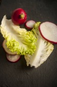 Klejnot organiczne świeże sałaty i rzodkiewki na tle łupek