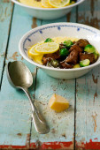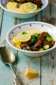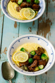 miód ocet balsamiczny i Brukseli cytryny wyrastają z kurczaka z kozim serem polenta