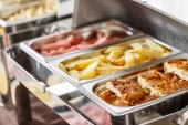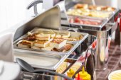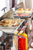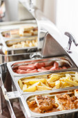 Śniadanie w formie bufetu ogrzewane tacki gotowy dla usługi. Śniadanie w formie szwedzkiego stołu hotel.