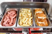 Zdjęcie "Śniadanie w formie bufetu ogrzewane tacki gotowy dla usługi. Śniadanie w formie szwedzkiego stołu hotel." może być wykorzystywane do celów osobistych i komercyjnych zgodnie z warunkami zakupionej licencji Royalty-free. Obraz jest dostępny do pobrania w jakości wysokiej rozdzielczości do 5760x3840.