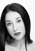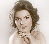 Portret pięknej kobiety z kręconymi włosami - na białym na czarnym tle
