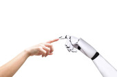 przycięte strzał człowieka co wysoki pięć gest na białym tle i robota