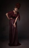 Portret kobiety z barokowym fryzurę i fantazyjne Koronki Bielizna pozowanie na ciemnym tle