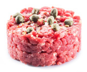 Kotlet z ziemi lub surowego hamburger z przyprawami na biały backgrou