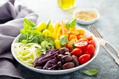 Zdjęcie "Zdrowa Sałatka z warzyw rainbow " może być wykorzystywane do celów osobistych i komercyjnych zgodnie z warunkami zakupionej licencji Royalty-free. Obraz jest dostępny do pobrania w jakości wysokiej rozdzielczości do 5760x3840.