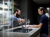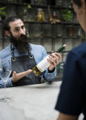 Zdjęcie "Barman, trzymając butelkę wina w barze licznika " może być wykorzystywane do celów osobistych i komercyjnych zgodnie z warunkami zakupionej licencji Royalty-free. Obraz jest dostępny do pobrania w jakości wysokiej rozdzielczości do 5760x3840.