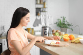 Piękna kobieta, Wyciskanie soku cytrynowym w kuchni