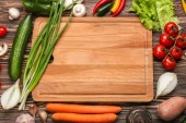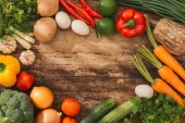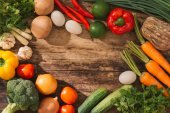 Świeże warzywa na drewnianym stole. Widok z góry miejsce