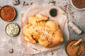 Zdjęcie "Tradycyjne hiszpańskie owoce morza paella pan ryż, groszek, krewetki, małże, kałamarnice na światło szare tło betonu. Widok z góry, lato. Kwadratowych upraw" może być wykorzystywane do celów osobistych i komercyjnych zgodnie z warunkami zakupionej licencji Royalty-free. Obraz jest dostępny do pobrania w jakości wysokiej rozdzielczości do 5760x3840.