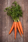 Pęczek świeżego organicznej marchwi na tle drewnianych z sunlights. Pojęcie diety, mączki surowej, wegetariańskie
