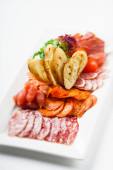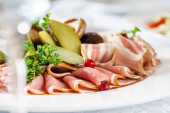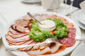 mięso przekąska płyta Biała, z bliska