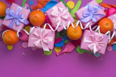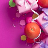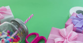 Zdjęcie "Holiday plakat pola prezenty ze szkła mlecznego jasne zielone tło. Świąteczny letnia impreza" może być wykorzystywane do celów osobistych i komercyjnych zgodnie z warunkami zakupionej licencji Royalty-free. Obraz jest dostępny do pobrania w jakości wysokiej rozdzielczości do 5760x3840.