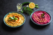 Potrawy z ciecierzycy. Hummus. Chudego kuchni bliskowschodniej.
