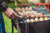 Szpikulec kręci ręką na grill