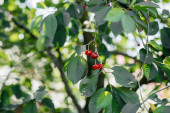 Zdjęcie "Dojrzałe czerwone wiśnia waży na gałęzi z zielonych liści" może być wykorzystywane do celów osobistych i komercyjnych zgodnie z warunkami zakupionej licencji Royalty-free. Obraz jest dostępny do pobrania w jakości wysokiej rozdzielczości do 5760x3840.