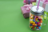 Zestaw świąteczny skład pudełka z piłki candy koktajl materiałów.