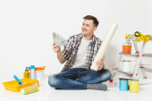 Zdjęcie "Młody wyczerpane Kobieta w ubranie posiadania karty kredytowej i tapeta roll i utrzymanie ręce w pobliżu twarzy na białym tle. Instrumenty do remontu mieszkanie Pokój. Koncepcja domu naprawy." może być wykorzystywane do celów osobistych i komercyjnych zgodnie z warunkami zakupionej licencji Royalty-free. Obraz jest dostępny do pobrania w jakości wysokiej rozdzielczości do 5760x3840.
