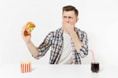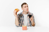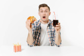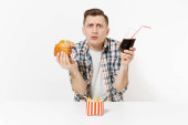 Zdjęcie "Młoda kobieta zabawa z ogonami, miara zwijana w talii przytrzymując burger, cola w szklanej butelce na białym tle na białym tle. Prawidłowe odżywianie lub klasyczny amerykański fast food. Reklama obszar z miejsca kopii." może być wykorzystywane do celów osobistych i komercyjnych zgodnie z warunkami zakupionej licencji Royalty-free. Obraz jest dostępny do pobrania w jakości wysokiej rozdzielczości do 5760x3840.